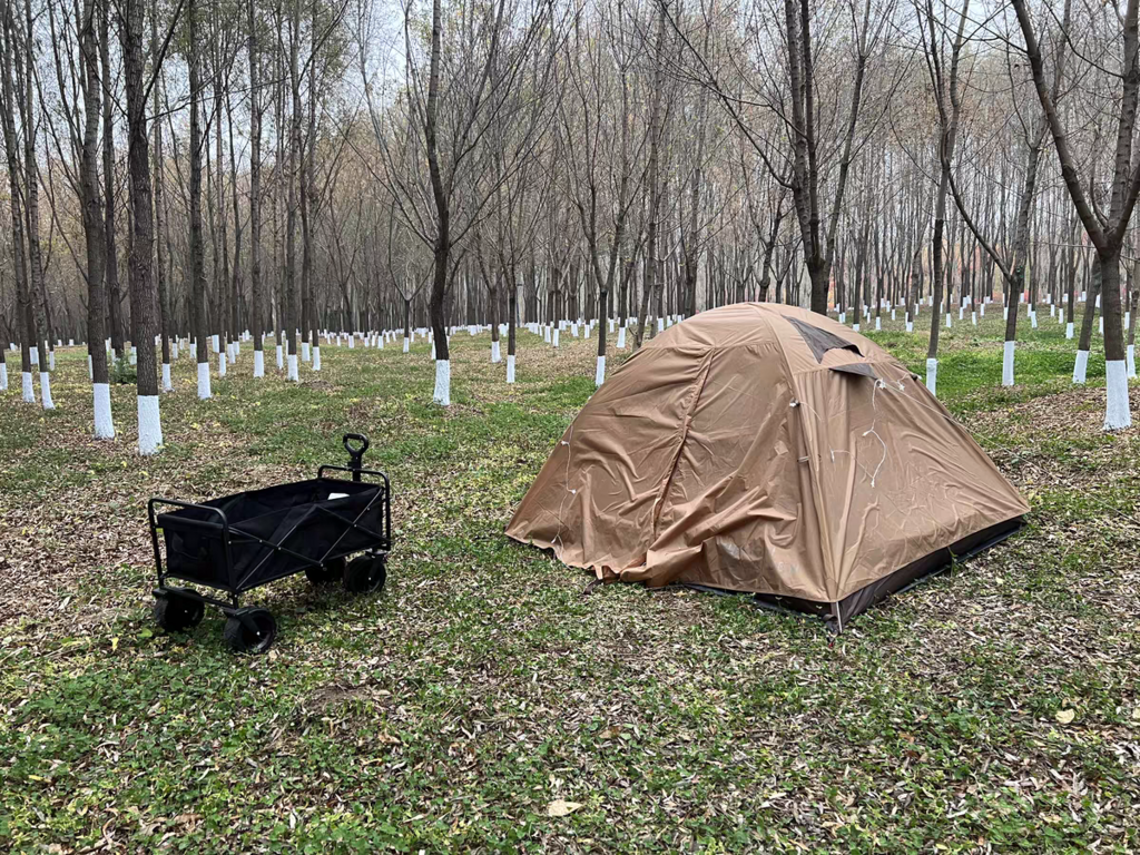Yes, it’s designed specifically for two adults. The interior is 210 × 140 cm with 110 cm of peak height—enough space to lie down fully, sit up, and keep gear inside.